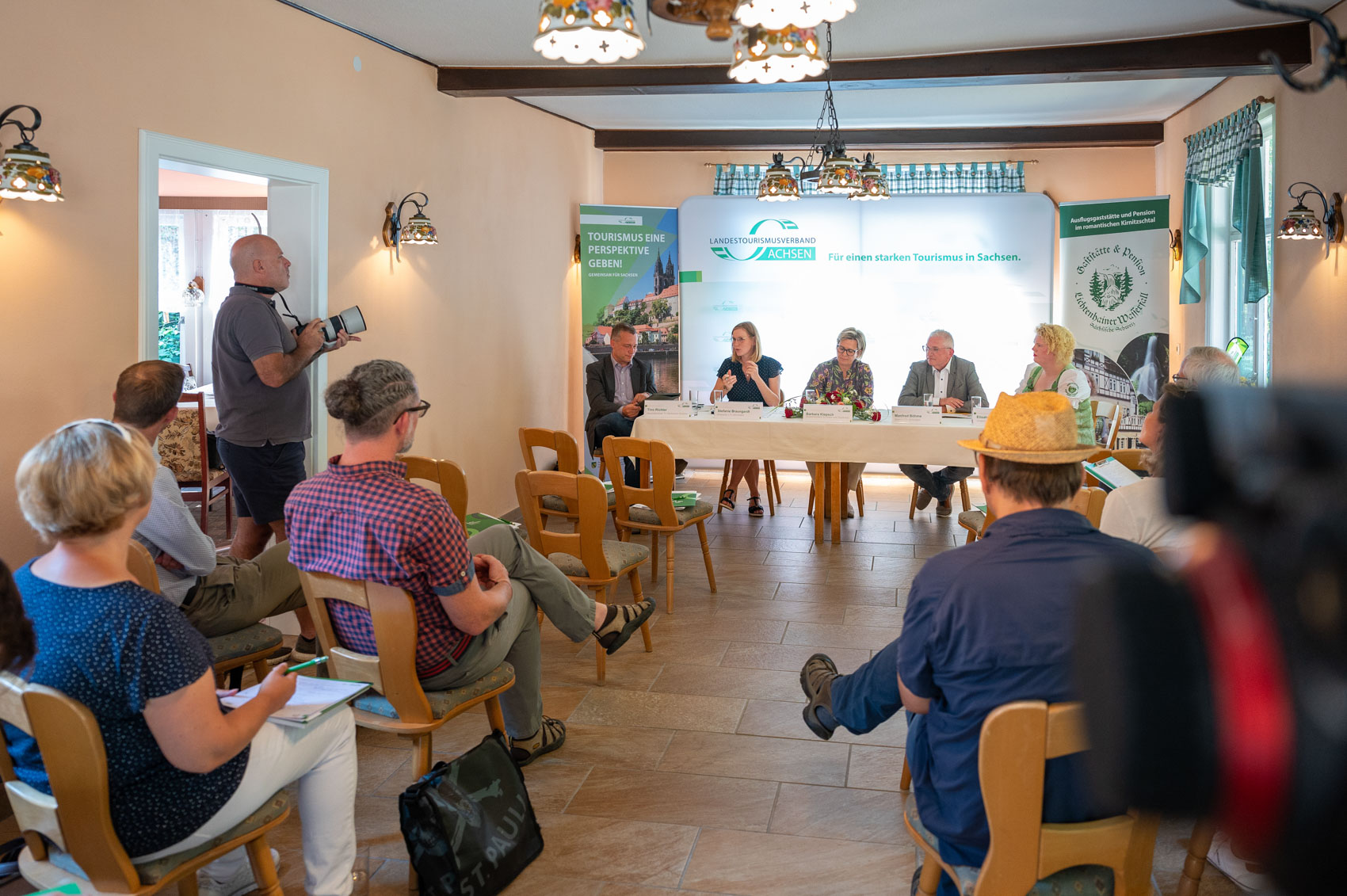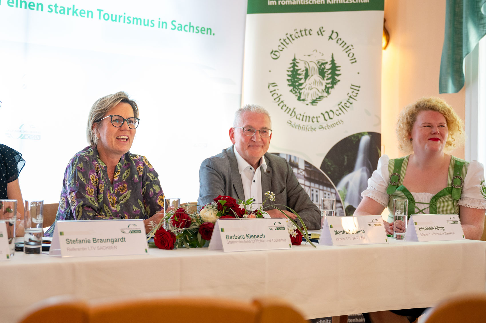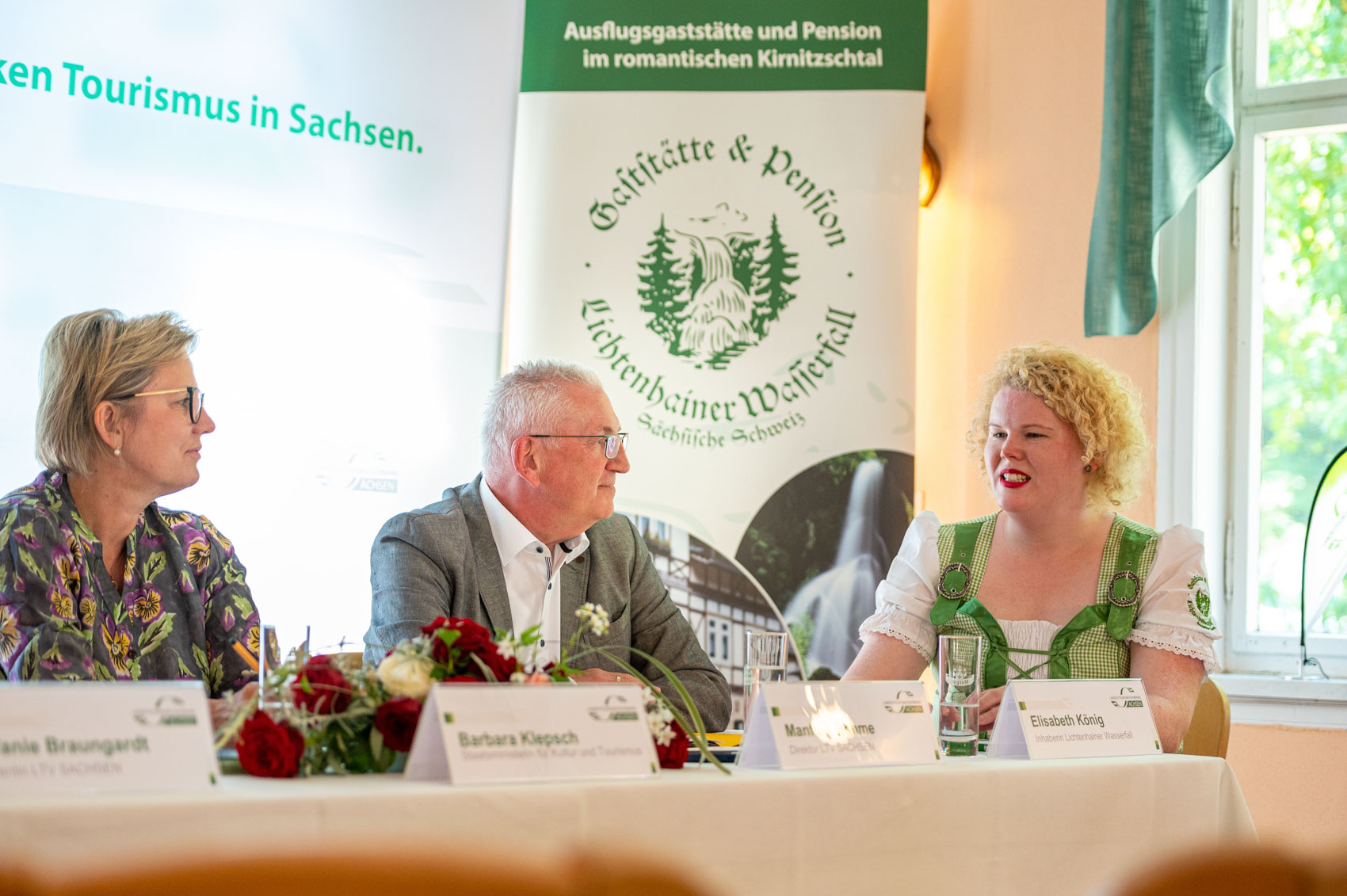 Sachsens Tourismusministerin Barbara Klepsch hat am 25.07. 2022 in Sebnitz gemeinsam mit dem Direktor des LTV SACHSEN Manfred Böhme das Projekt „Tourismus 360Grad Digital“ am Beispiel der Gaststätte und Pension „Lichtenhainer Wasserfall“ vorgestellt.