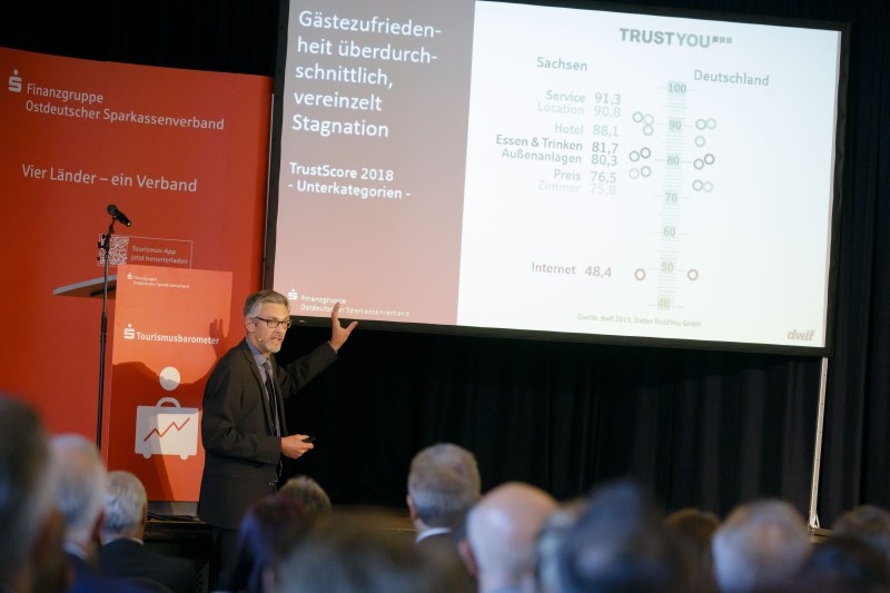 Am 15.08.2019 trafen sich rund 170 Touristiker aus ganz Sachsen zum Sparkassen-Tourismusbarometer in Radeberg. Zu Beginn wurden aktuelle Ergebnisse zur Besucher- und Qualitätsentwicklung sowie zum touristischen Arbeitsmarkt in Sachsen vorgestellt. Unter dem Motto „Nachhaltige Mobilität im Tourismus in Sachsen – Lösungen im Praxischeck“ wurden im Anschluss verschiedene Mobilitätskonzepte und Ansätze für mehr Nachhaltigkeit aufgezeigt. Das Beispiel der Onlinebuchung Ostbayern machte deutlich, wie kleine Gastgeber mehr Reichweite auf dem Onlinemarkt durch Vertriebskooperationen erzielen können. Dem sächsischen Unternehmen HEIDE SPA Hotel & Resort Bad Düben und der Tourist-Information Altenberg wurde zudem die Auszeichnung ServiceQualität Deutschland, Stufe II im Rahmen der Veranstaltung verliehen.