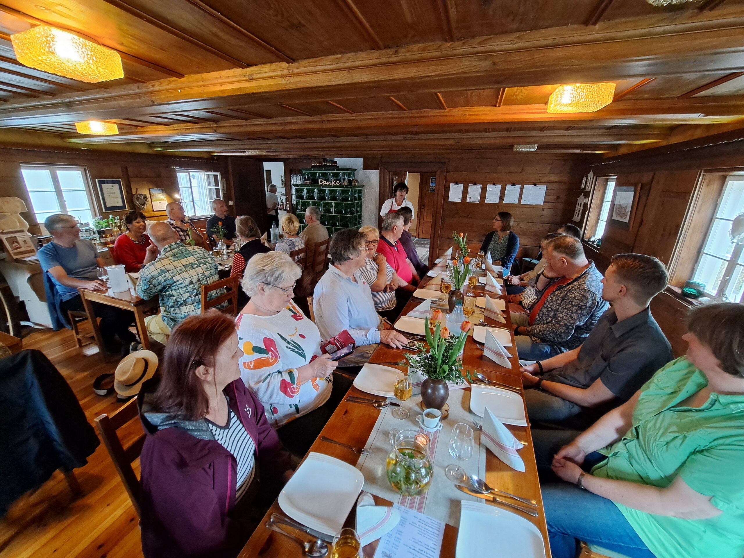In seinem grundlegenden Vortrag führte er uns in das „Geheimnis der Umgebindehäuser“ ein. Sehr anschaulich stellte er die Geschichte der Umgebindehäuser in der Oberlausitz dar. Deutlich wurde, dass diese besonderen Häuser ein sehr wichtiger Bestandteil der Kulturlandschaft der Oberlausitz sind. Sehr schön war dann auch die Besichtigung des Umgebindehaus-Parkes mit originalen Modellen im Maßstab 1:5. Dort konnten wir den Inhalten des Vortrages weiter nachspüren. Mit dem 12 Uhr-Glockenschlag erreichten wir die Kirche, um am Mittag ein paar Minuten inne zu halten. Die Mittagspause in der „Kleenen Schänke“ hatten wir uns dann echt verdient. Mit allen Sinnen konnten wir die Gastfreund-schaft der Oberlausitz schmecken und erleben. Wieder in der Kirchschule angekommen, ging Oliver Herberg von der MGO mit uns auf eine kleine bebilderte Reise. Dabei führte er uns aktuelle Trends und Maßnahmen im Tourismus der Oberlausitz vor Augen. Von besonderer Bedeutung war – wie bei jeder dieser Veranstaltungen – der sich anschließende Austausch zwischen den Teilnehmenden, bei dem jeder noch einmal zu Wort kam. Auch über unser Treffen hinaus wird sich das Netzwerk zwischen den Aktiven aus den Bereichen Wander, Pilgern, Kirche und Tourismus weiter entfalten und festigen. Nun waren alle Teilnehmenden noch eingeladen, mehr über die größte evangelische Dorfkirche zu erfahren. Auch die Klänge der Kirchenorgel waren zu erleben. Dazu hatte sich die Kantorin, Inkeri Hannonen, extra Zeit für uns genommen. Gute Gespräche gab es noch bei Kaffee und leckerem Kuchen in der „Kleenen Schänke“. In allen Richtungen gestärkt und voller neuer Informationen und Eindrücke traten nun die Teilnehmer*innen den Heimweg an.